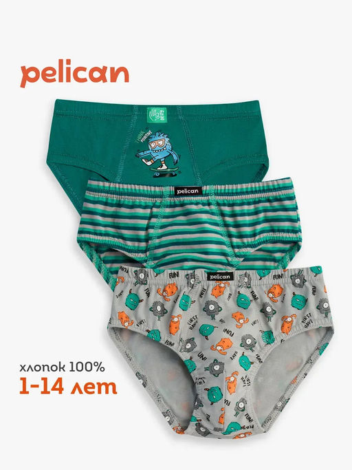 PELICAN, набор трусов для мальчиков, Изумрудный/изумрудный/серый