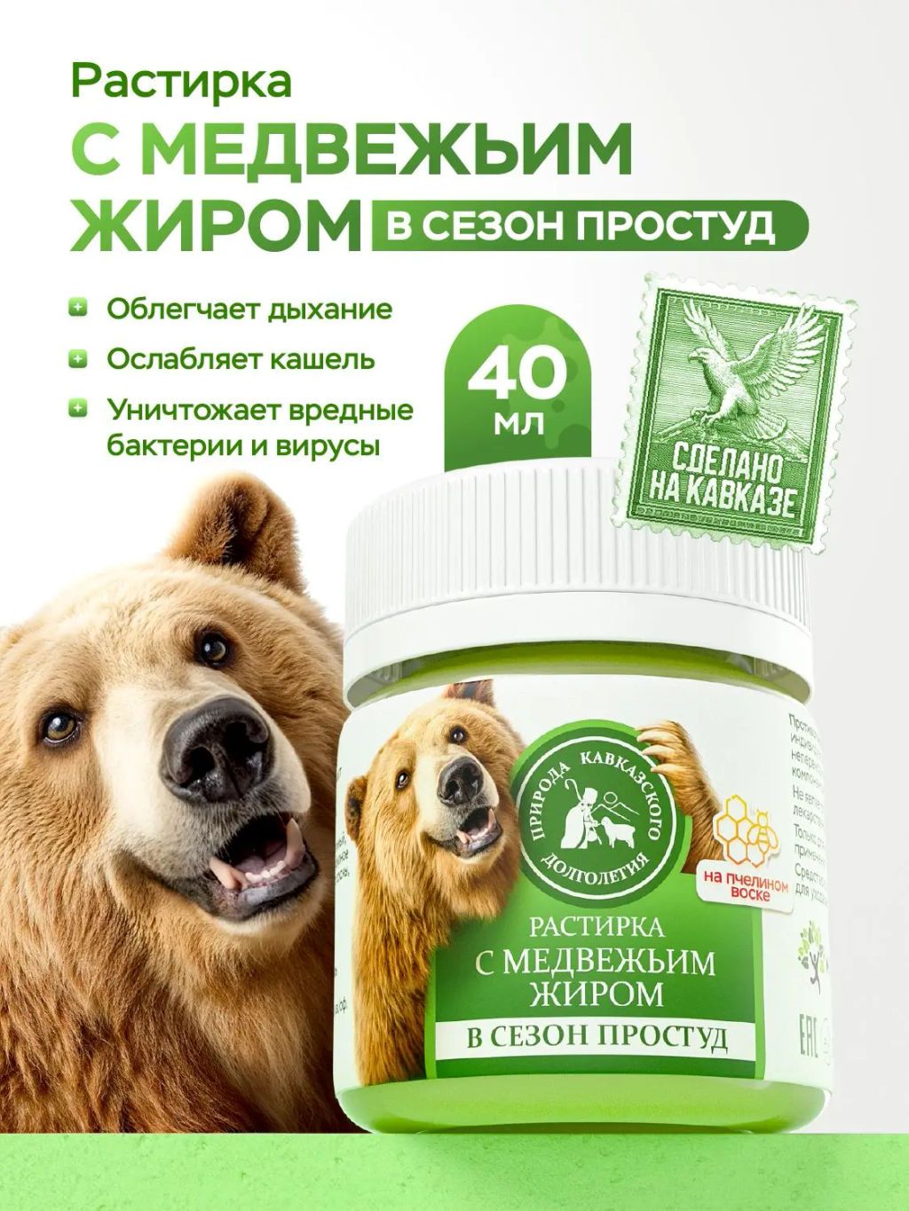 Растирка с медвежьим жиром, пластик, 40 мл, "Природа кавказского долголетия"