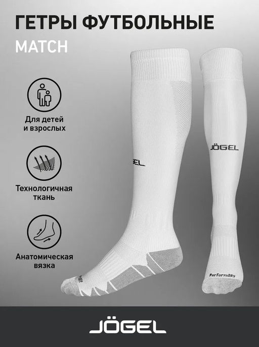 Гетры футбольные JOGEL Match Socks, белый