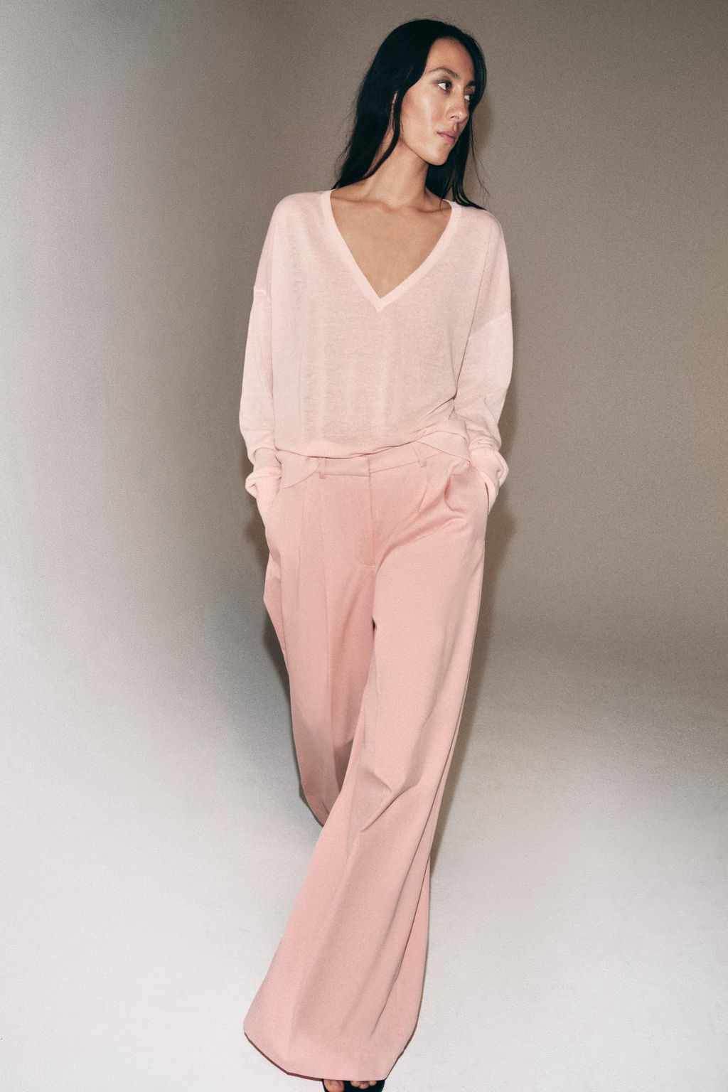 PANTAL?N WIDE LEG PLIEGUES ZW COLLECTION / Rosa pastel