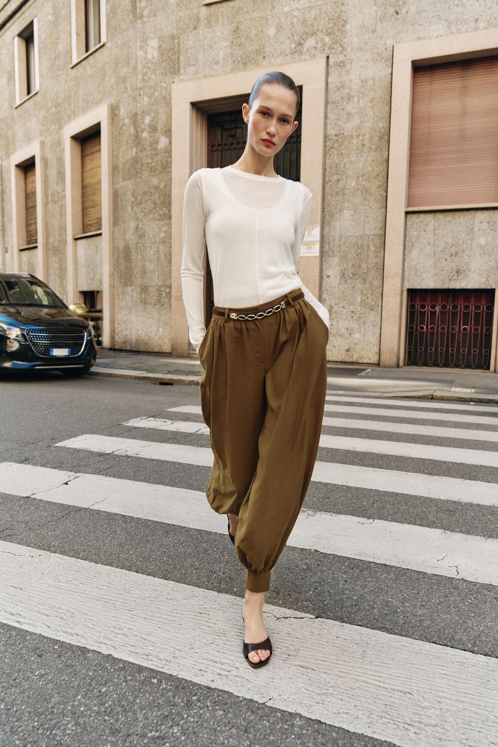 PANTAL?N BOMBACHO CINTUR?N CADENA / Oliva