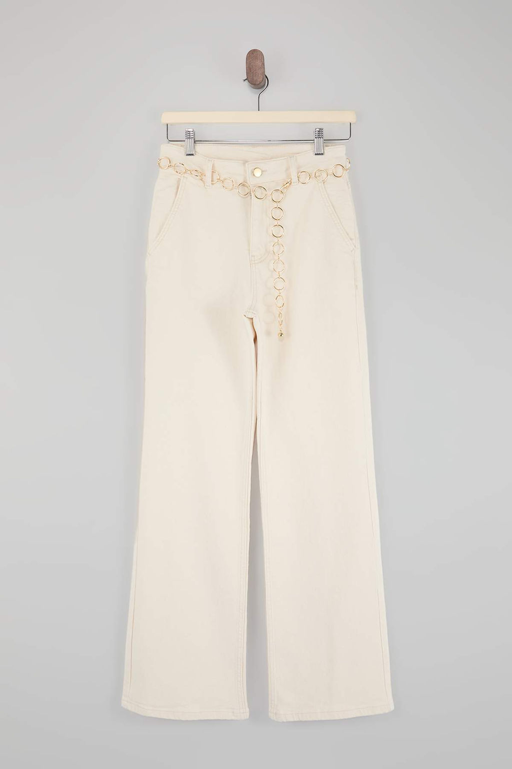 Ekru Zincir Kemer Detayl? Yuksek Bel Az Esnek Wide Leg Jeans TWOSS26JE00186