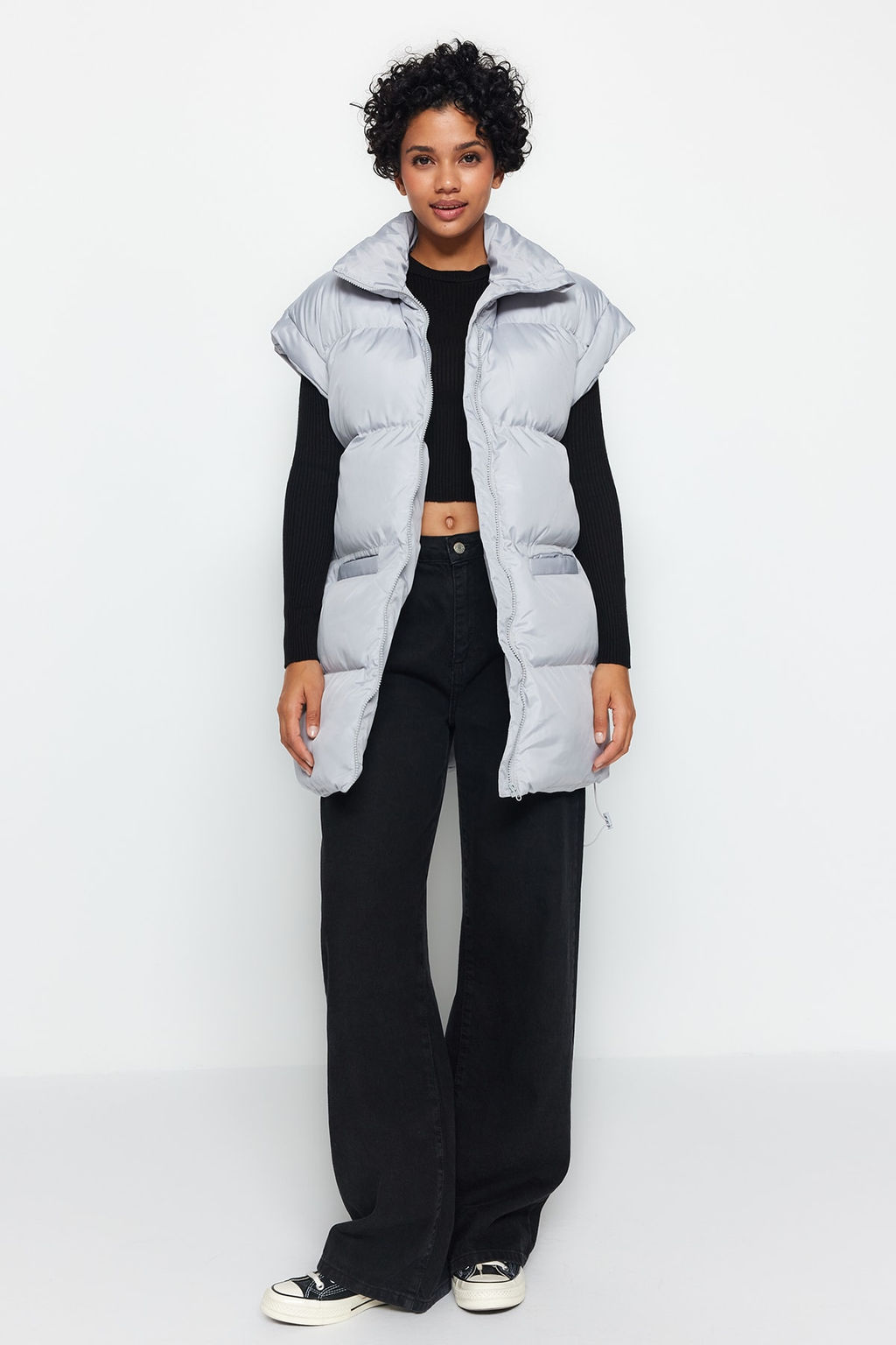 Gri Oversize Omuz Detayl? Su Itici Sisme Yelek TWOAW24YE00010