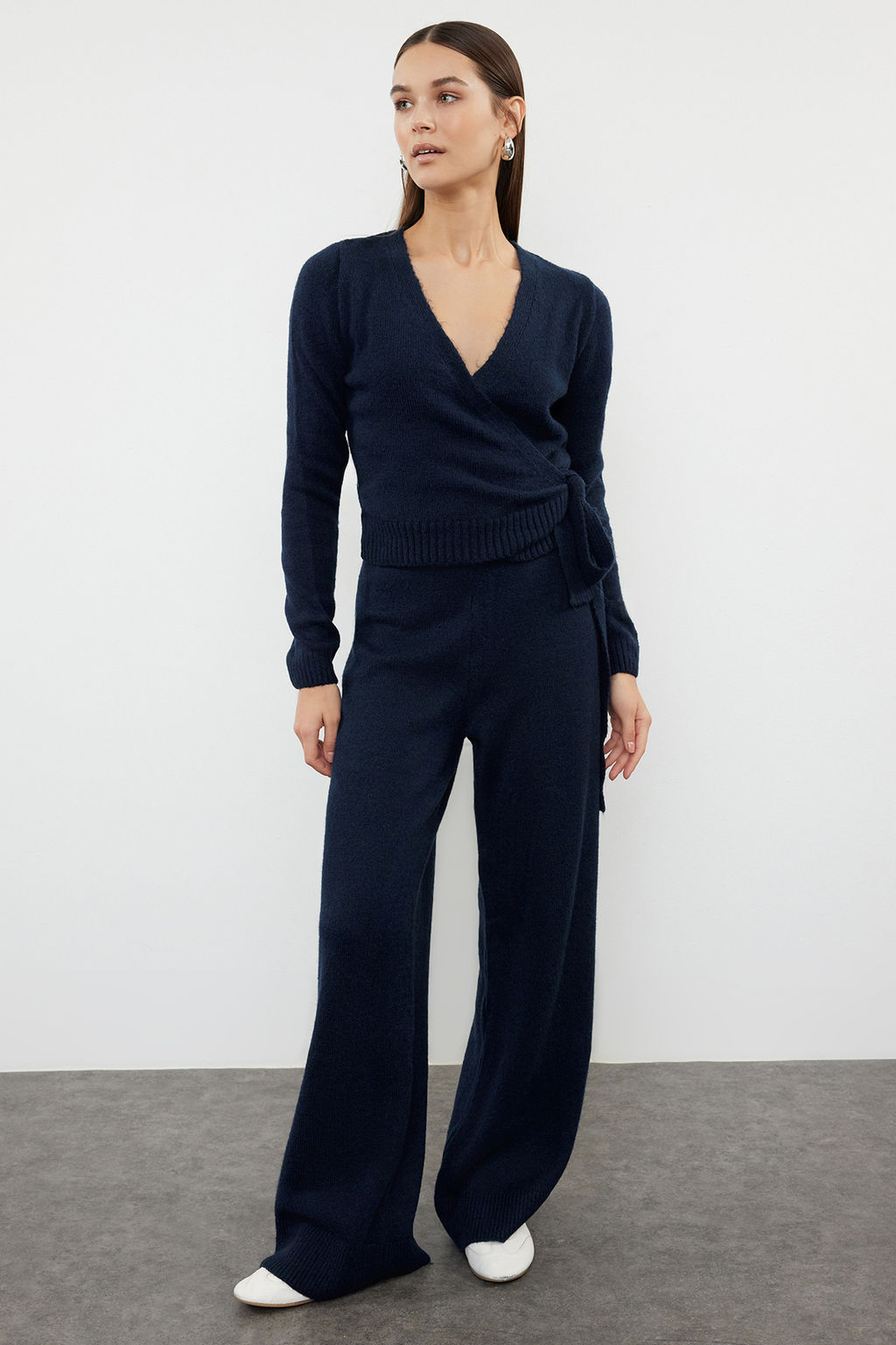 Petrol Crop Genis Kal?p Kruvaze Baglama Detayl? Triko Alt-Ust Tak?m TWOAW24AU00016