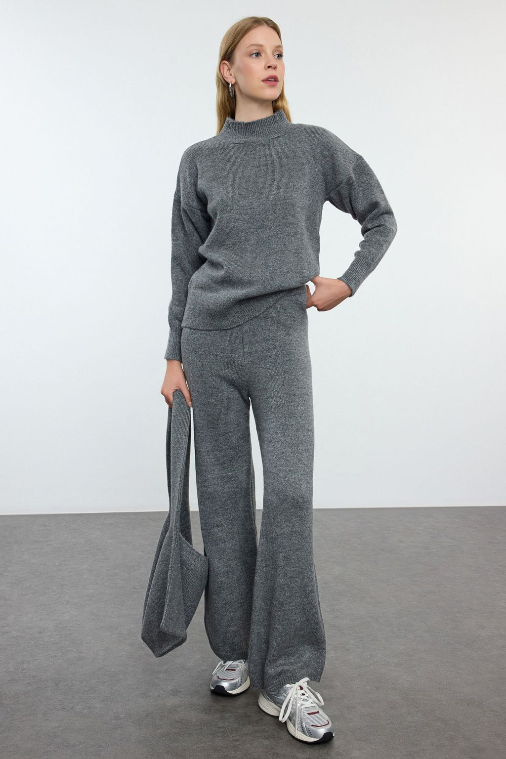 Antrasit Yumusak Dokulu Genis Kal?p Cantal? Triko Alt-Ust Tak?m TWOAW25AU00086