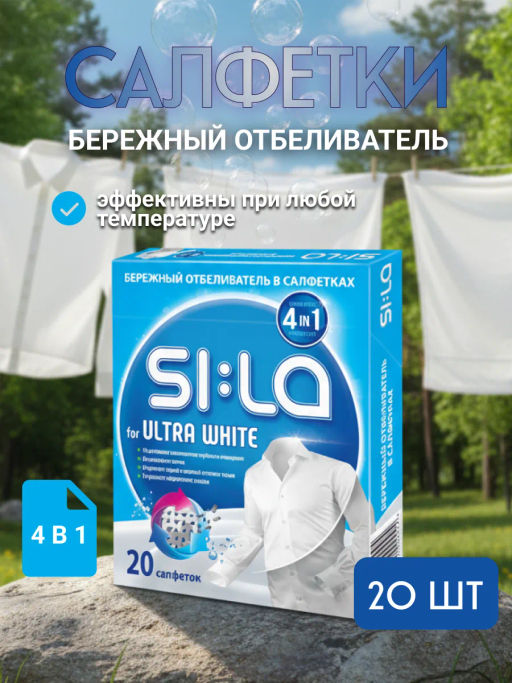 SI:LA Салфетки для стирки "SI:LA for WHITE" отбеливающие, 20шт.