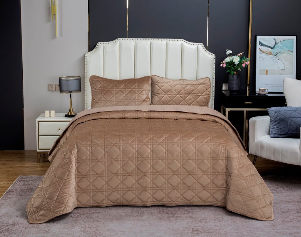 Стеганное покрывало Dori (кремовый капучино) 240х260см (1), 50х70см (2)