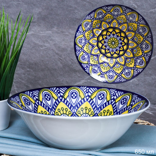Тарелка глубокая суповая 650 мл / 4805-8-2 /уп 72/ Сине-желтый орнамент