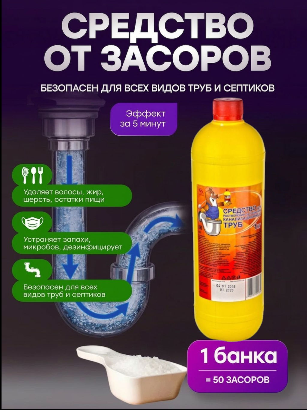 Средство д/чистки стоков и канализ.труб "Мастер Крот" 1000мл