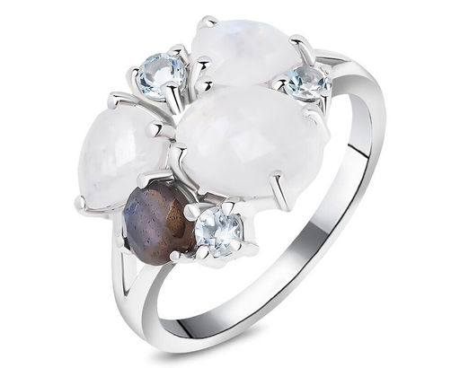 Кольцо, лабрадорит , лунный камень , топаз, Джаккет