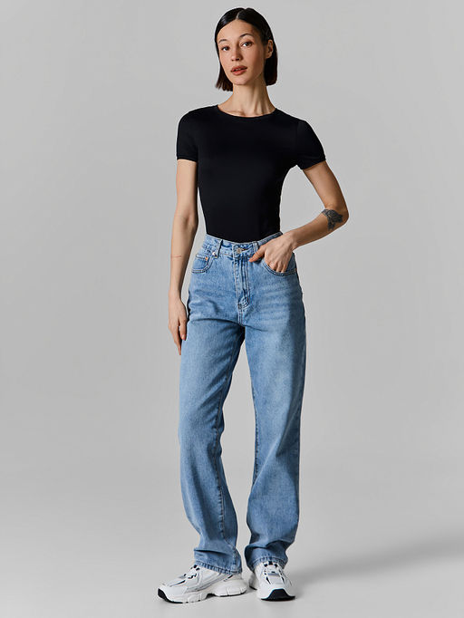 Джинсы прямые женские голубые