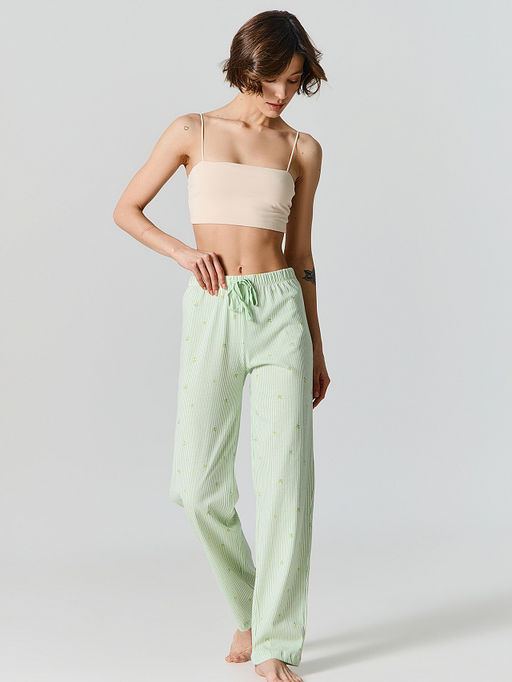 Брюки домашние женские зеленые в полоску
