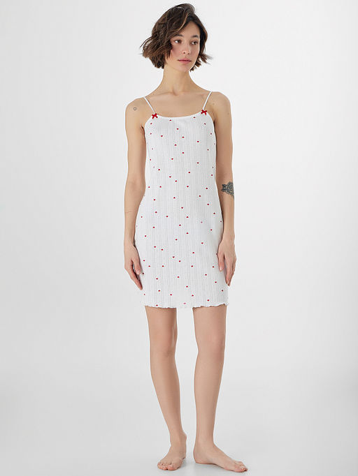 Сорочка ночная женская белая с принтом в сердечко