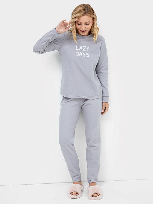 Флисовый пижамный комплект (лонгслив и брюки) серого цвета с принтом