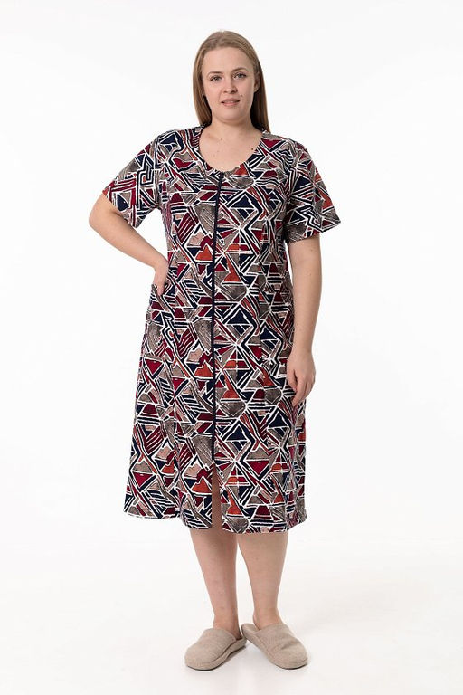 Халат на молнии М31430кс коричневый/синий