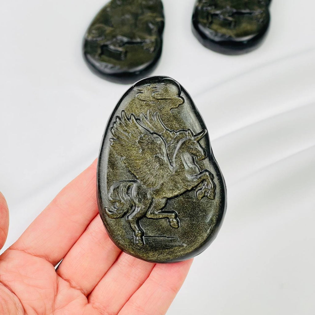 Фигурка Аликорн (Крылатый единорог) из золотистого Обсидиана