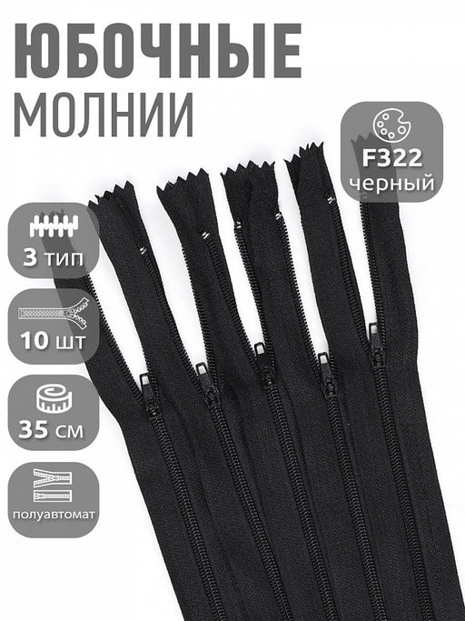 Молния Mzip пласт. юбочная №3, п/а 35 см, цв.F322 черный уп.10шт