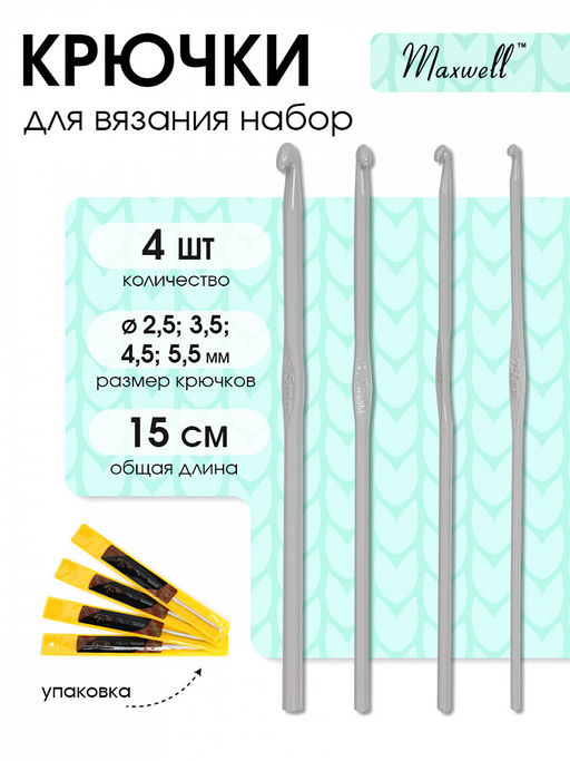 Набор крючков для вязания Maxwell Gold металлические со специальным покрытием арт.MAXW.38559 (2.5 мм/ 3.5 мм/ 4.5 мм/ 5.5 мм)
