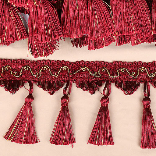 Бахрома для штор с кисточками арт.6152-0327 шир.100мм цв.6393 красный уп.10м