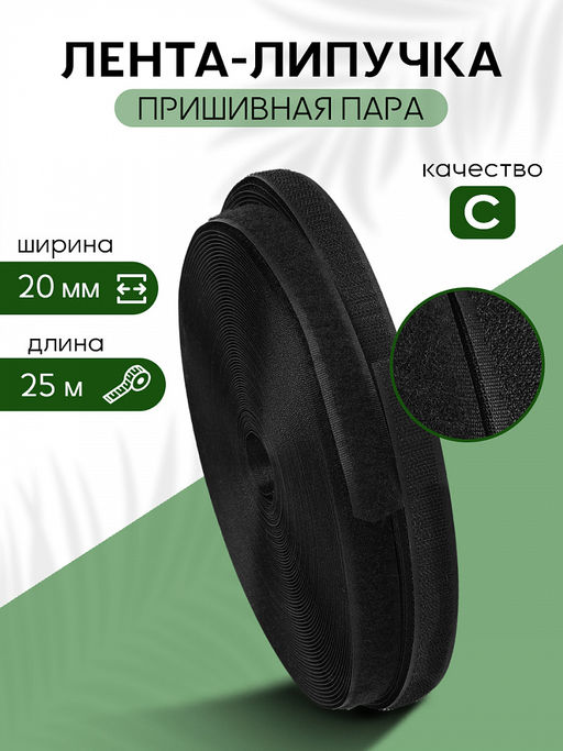 Лента липучка 20мм пришивная TBY черный F322 уп.25м пара