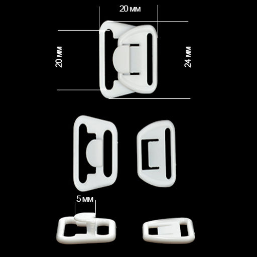 Крючок-застежка для бюстгальтера для кормящих мам пластик TBY-75302 20мм цв.белый уп.20 шт