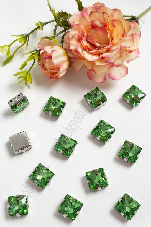 Стразы пришивные 12 мм "Квадрат" (20 шт) SF-3710, салатовый №7