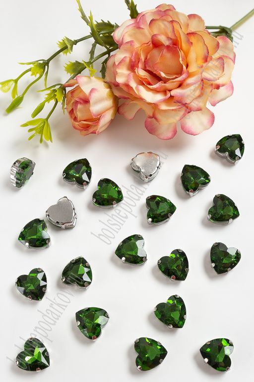 Стразы пришивные 12 мм "Сердечко" (10 шт) SF-3716, зеленый №6