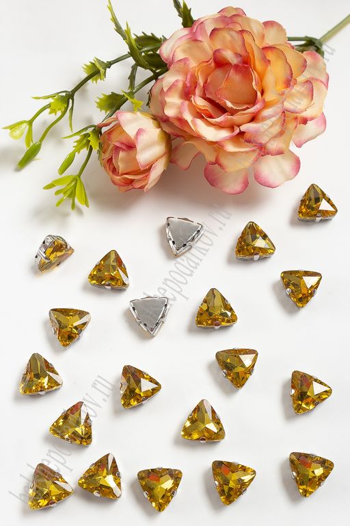 Стразы пришивные 12 мм "Треугольник" (10 шт) SF-3766, золото №14