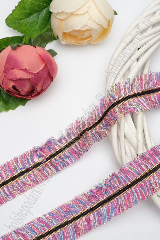 Тесьма отделочная 3 см*5 ярд "Бахрома с люрексом" (SF-2461) фукси/голубой