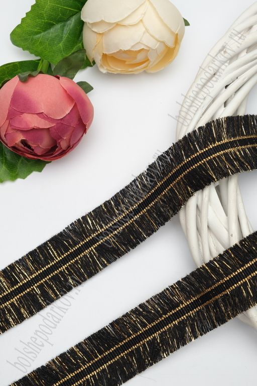 Тесьма отделочная 3 см*5 ярд "Бахрома с люрексом" (SF-2461) черный