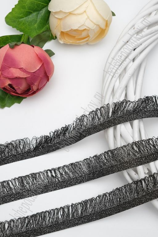 Тесьма отделочная 2,2 см*5 ярд "Бахрома" (SF-2462) черный/серебро