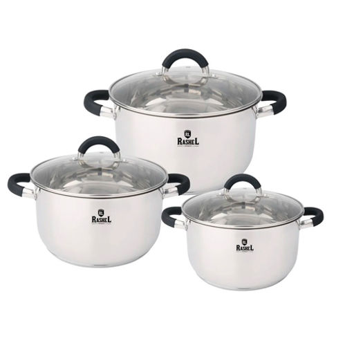 Набор кастрюль R-346к 6 предметов из нержавеющей стали со стекл. кр. (3,6л, 4,7л, 6л) (RASHEL)