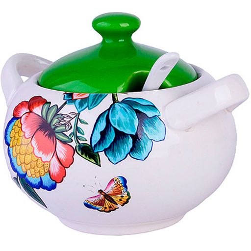 Сахарница с крышкой 375мл с ложкой 3пр Летний букет доломит LR 30795 (MAYER&BOCH)