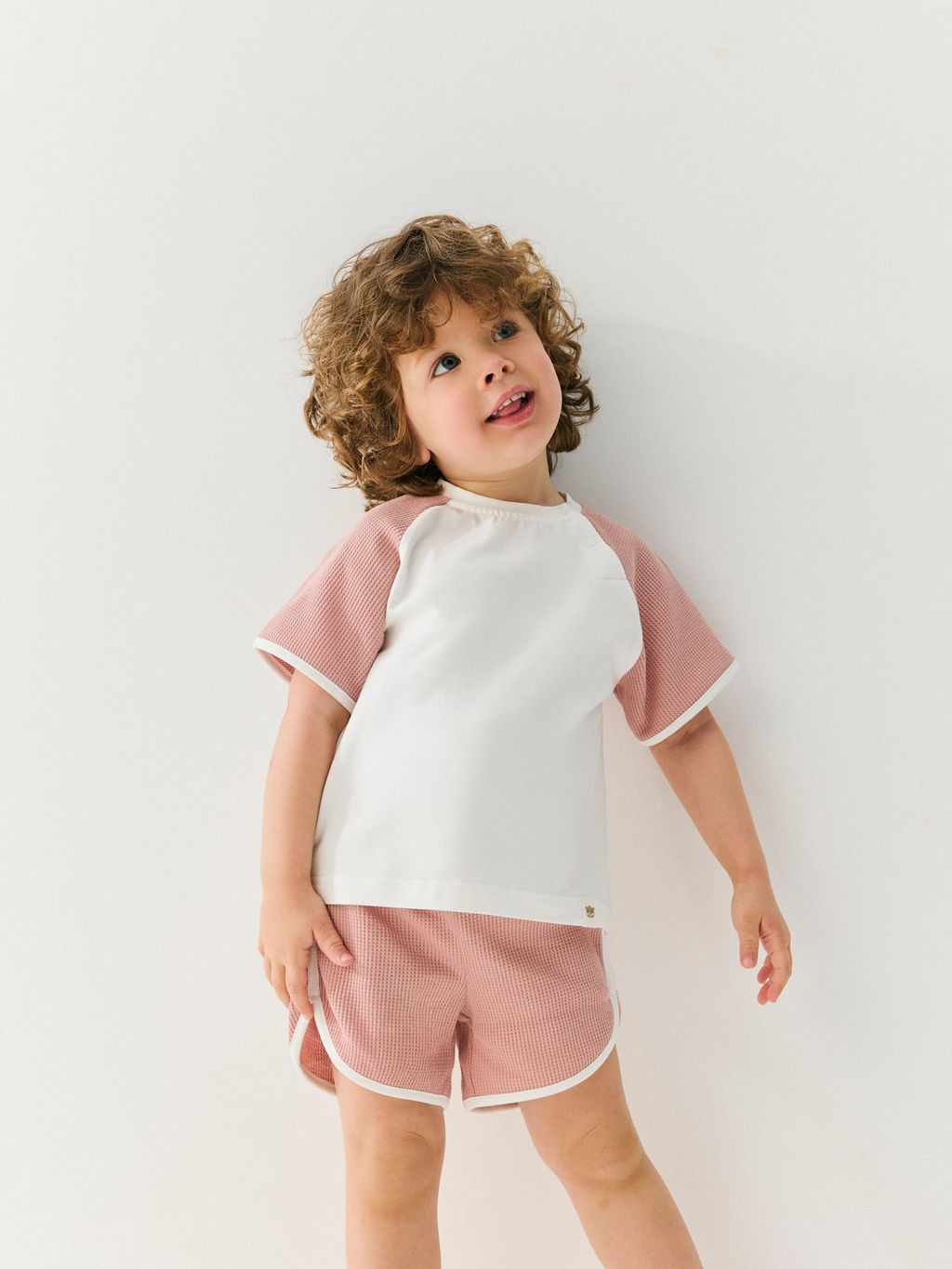 Комплект футболка и шорты "Пудра" из рифленой ткани 0+