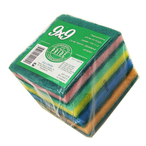 Губка бытовая с чистящим слоем "9х9" 5шт. 9х9х1,5см (гх018)