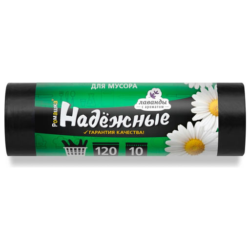 Мешки для мусора 120л, 70х110см, 20мкм, рулон 10шт., ПВД "Ромашка Надежные"