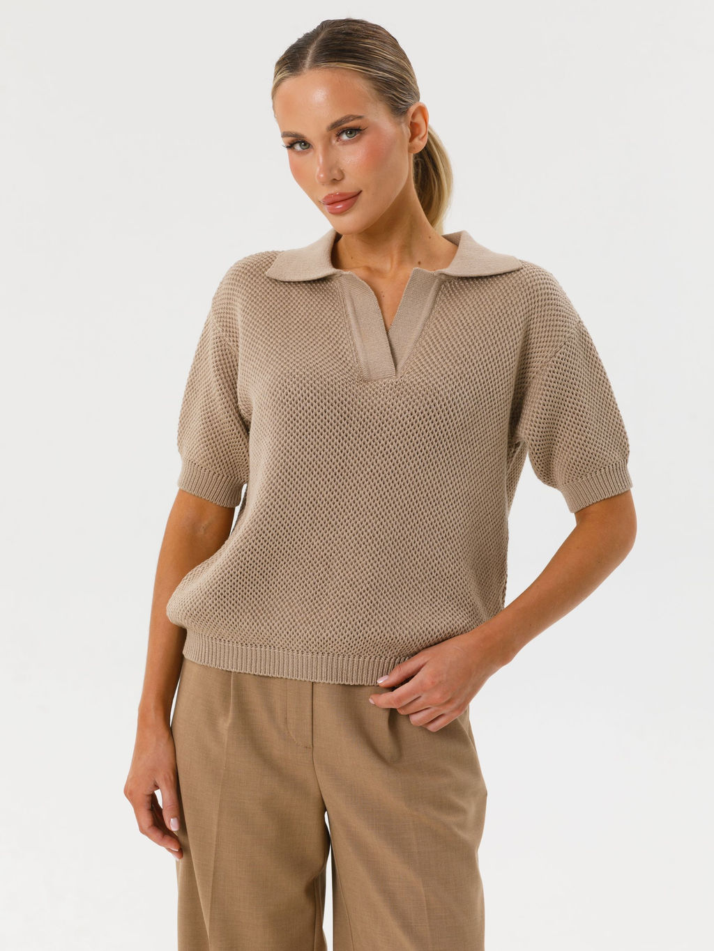Блузка поло вязаная