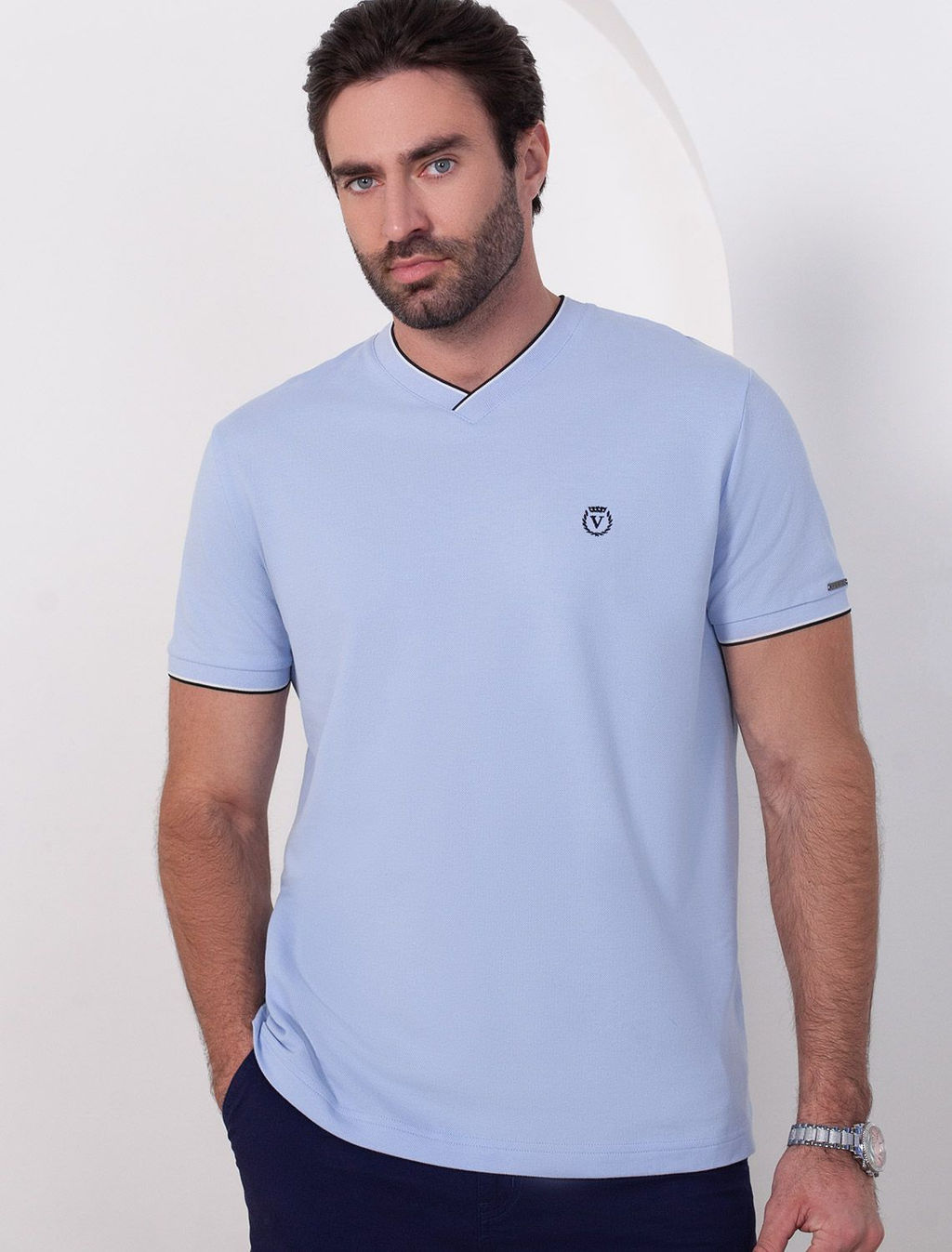 Футболка с V-вырезом из премиального хлопка с эластаном