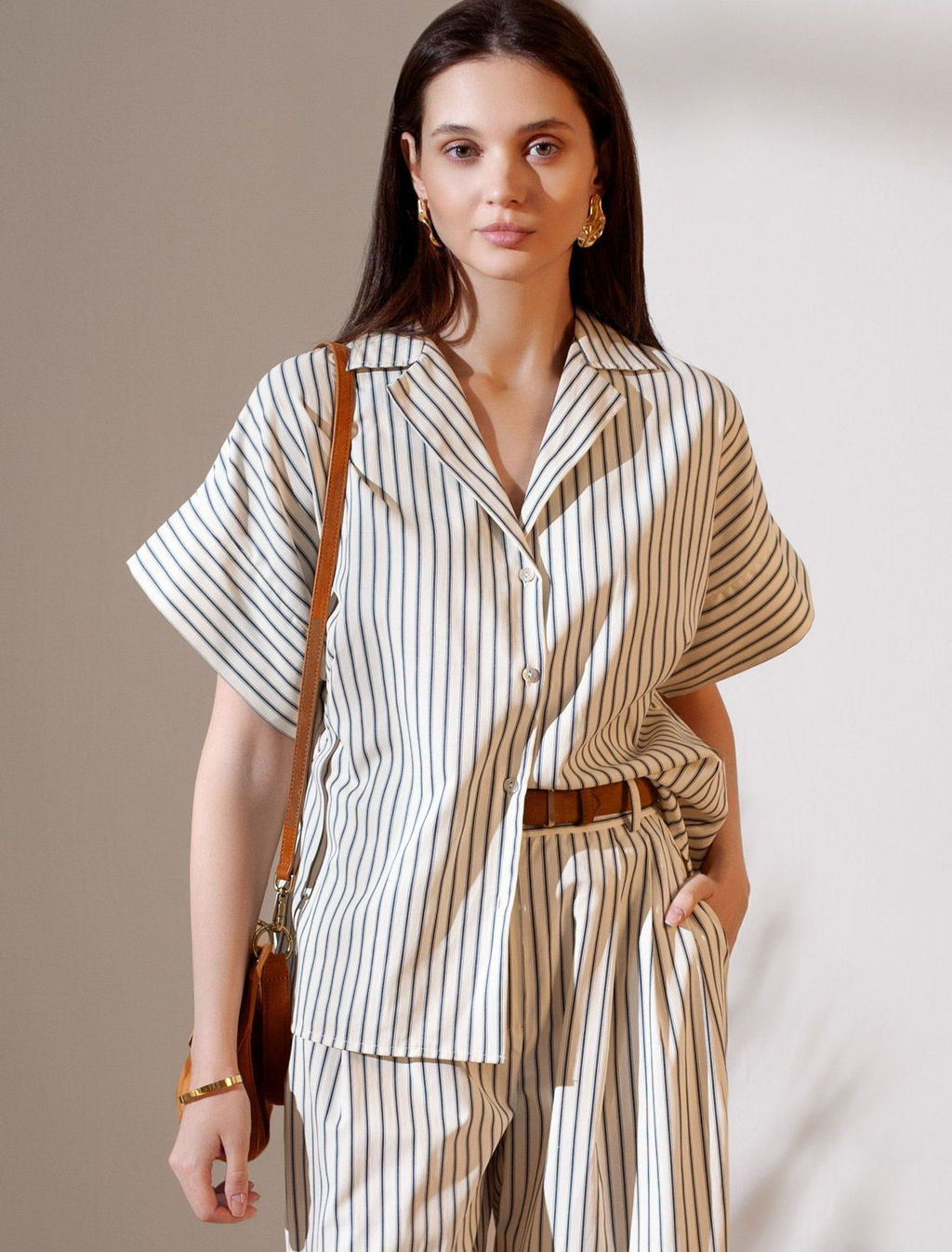 Блузка в полоску с цельнокроеным коротким рукавом из легкого хлопкового поплина