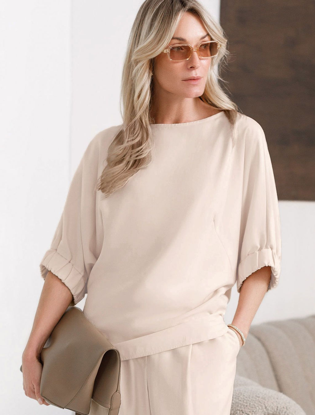 Свободная блузка с вырезом лодочка из плотного лиоцелла