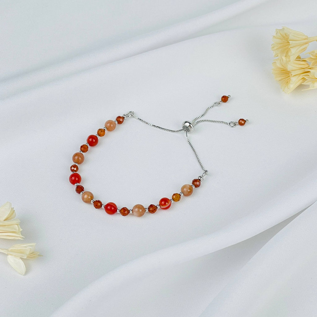 Браслет регулируемый из Сардоникса, Граната и Лунного камня