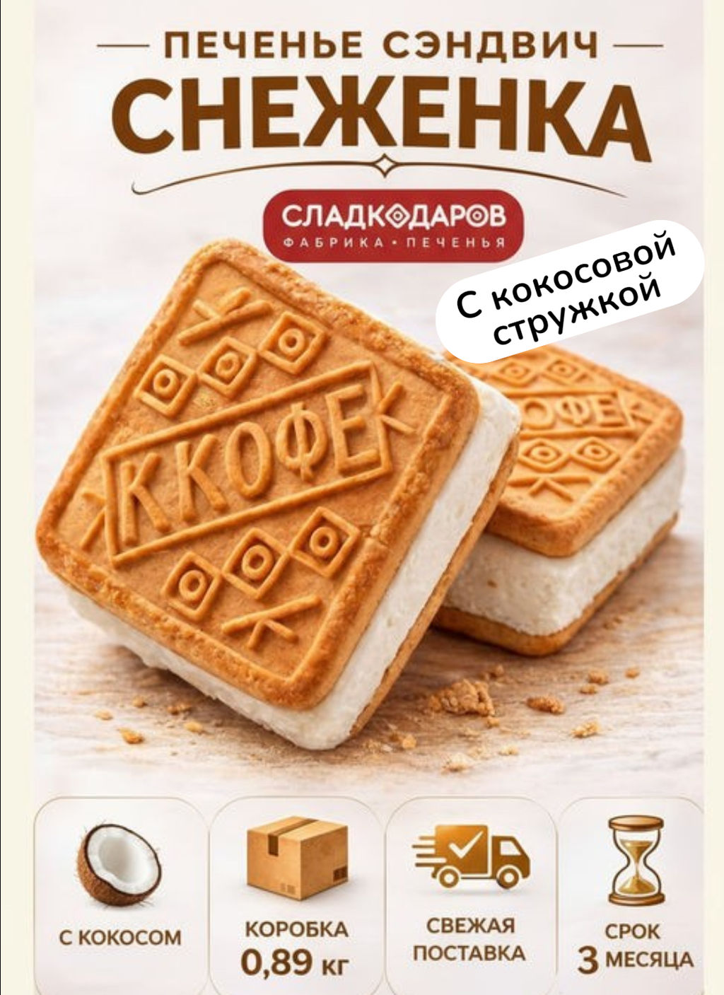 Печенье Снеженка  с кокосом  ТВ 0,890кг