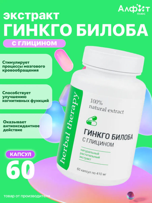 Экстракт Гинкго Билоба с глицином для мозга и памяти 60 капсул Алфит Плюс 2060