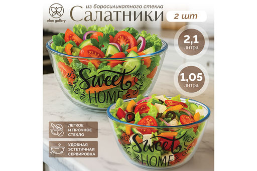 Набор салатников 2 пр. 1050 мл 17*17*9 см + 2,1л 21*21*10,5 см "Crystal glass" "Sweet home" стекло