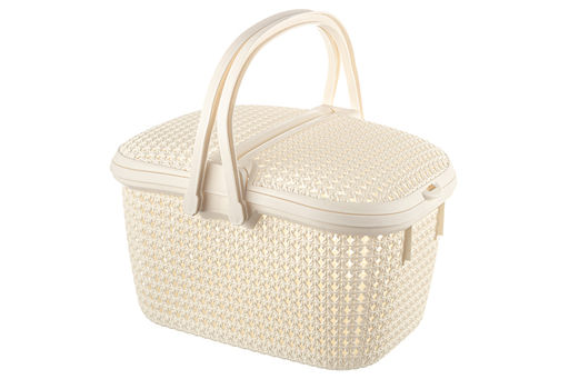 Корзина для пикника 25 л 46*35*27,5 см "Паола" с 2-мя крышками слоновая кость (модель 428)