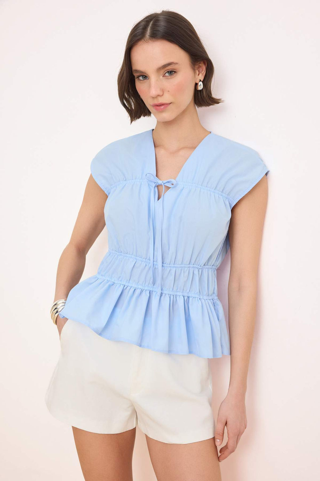 Ac?k Mavi Buzgu Detayl? Dokuma Bluz TWOSS26BZ00402