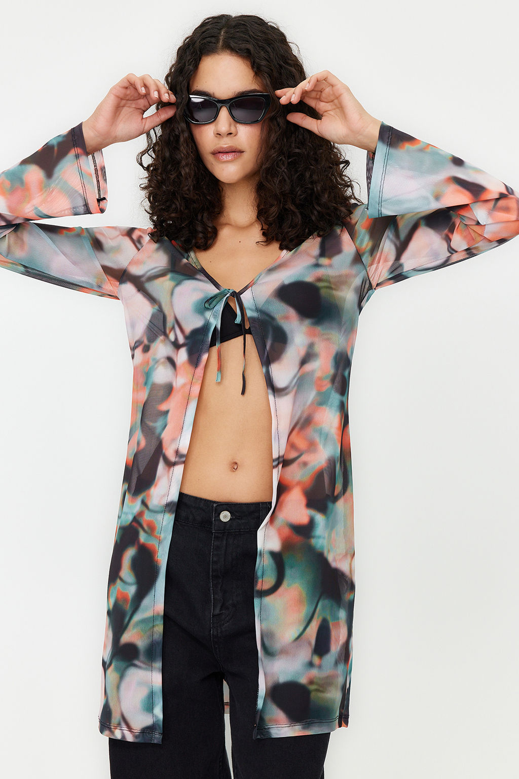 Cok Renkli Bask?l? Uzun Tul Esnek Orme Orme Bluz TWOSS24BZ00051