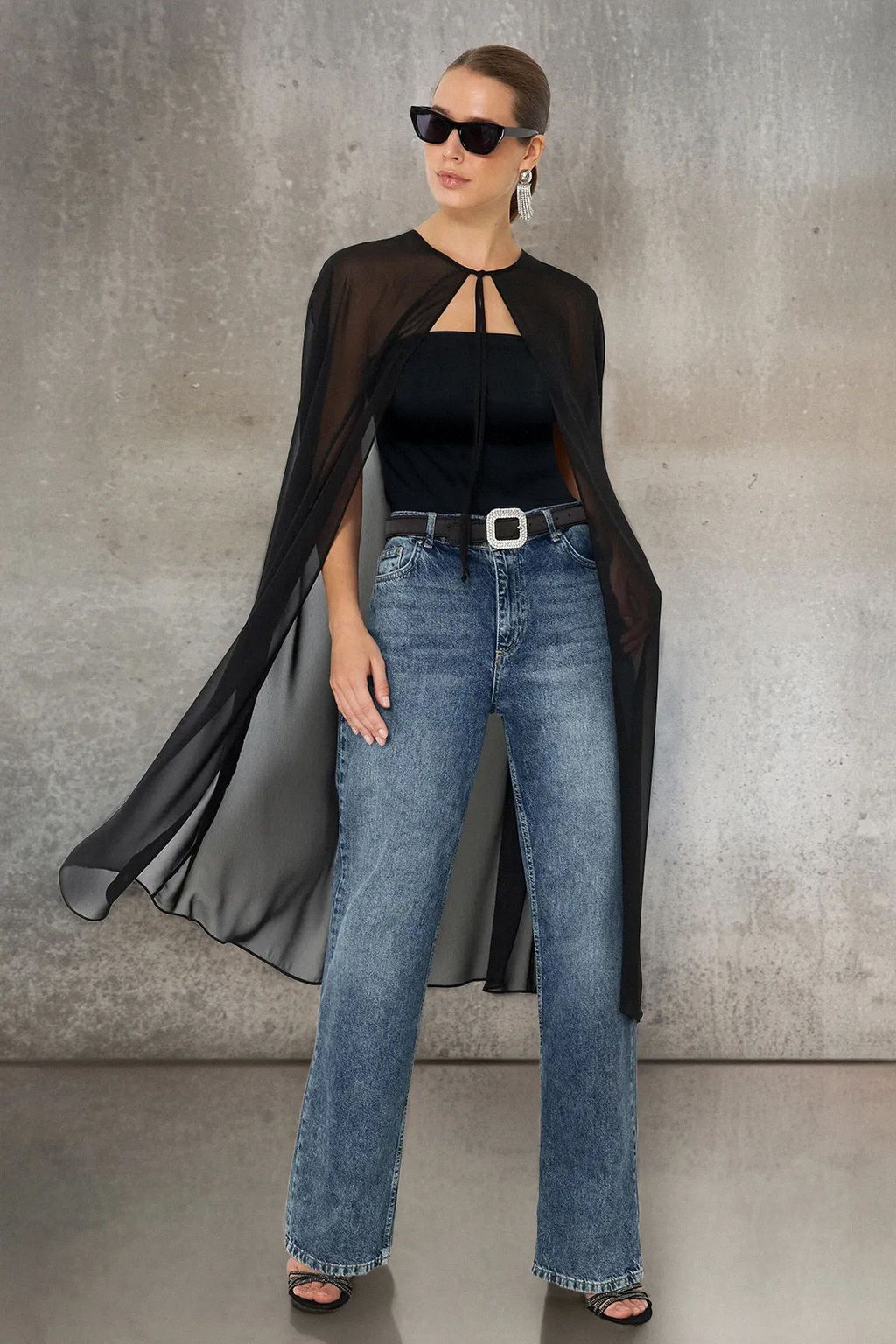 Siyah Dokuma Sifon Bluz TPRSS24BZ00035