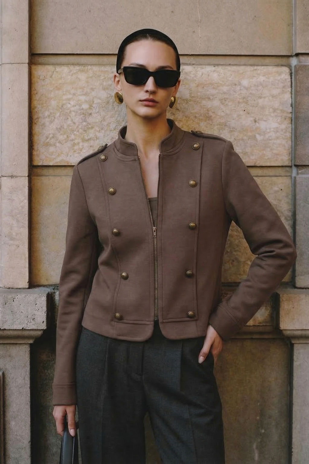 Kahverengi Fermuarl? Astarl? Dugme Detayl? Napolyon Ceket TWOSS26CE00048