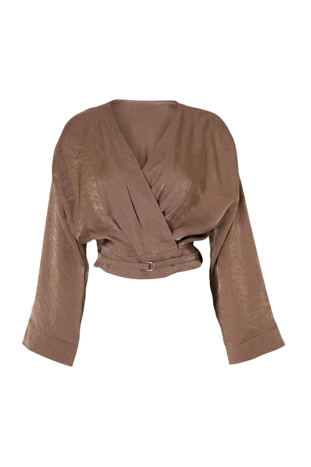 Kahverengi Studio Oversize Modal Icerikli Parlak Dokulu Dokumlu Baglamal? Ceket TWOSS26CE00047